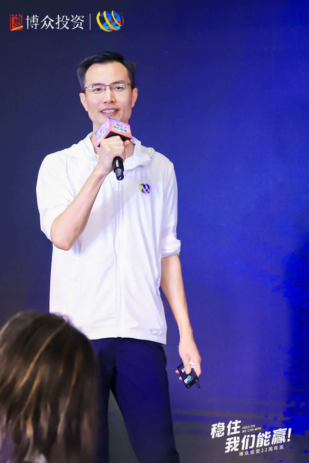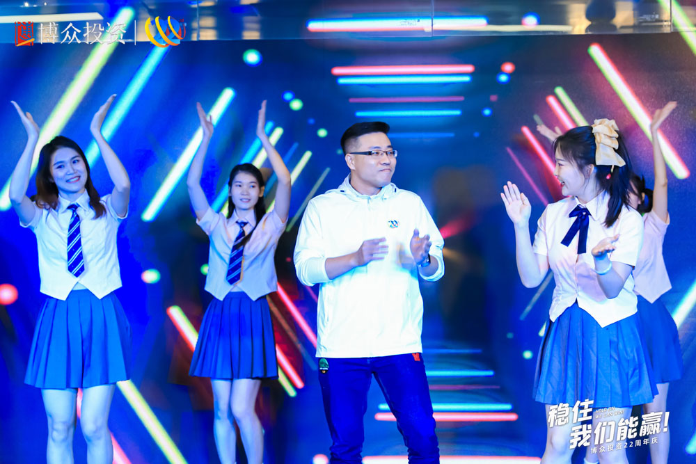 由廣州睿陽廣告有限公司策劃并執行的博眾投資22周年慶典于2022年7月12日在廣州辦公區天德廣場舉辦,活動以“穩住,我們能贏!”為主題,參與人數為850人左右。